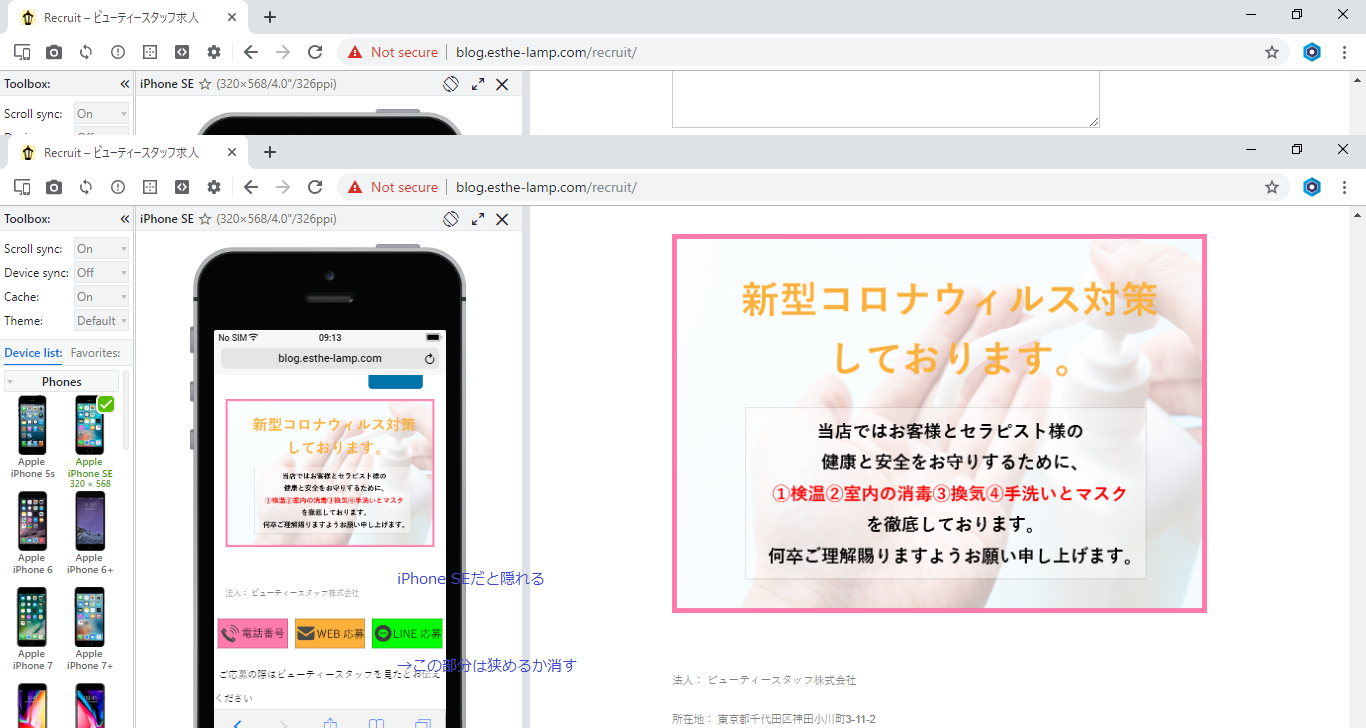 20200929-4 スマホ表示で会社住所が隠れてしまう問題を解消してください。